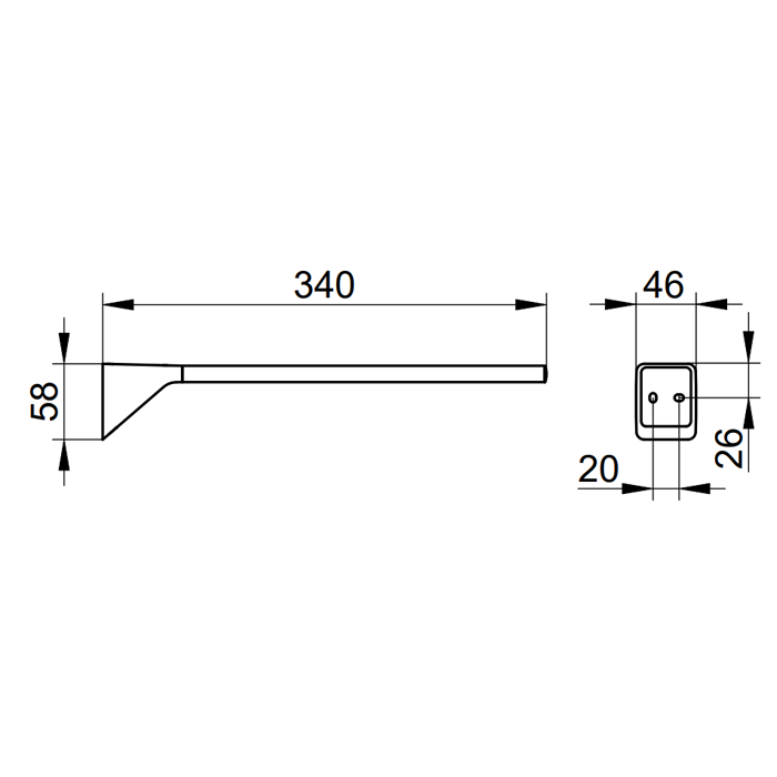 - Dimensions: 46 mm (W) x 58 mm (H) x 340 mm (D)